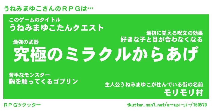 | 女子向けラノベタイトル風あだ名 | 『うねみまゆこ姫と円卓の騎士』 |