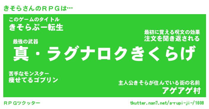 | 男性向けラノベタイトル風あだ名 | 『キソラアートオンライン』 |