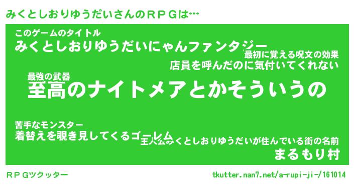 | 胡散臭い通販商品みたいなあだ名 | 『モテモテ間違いなし霊験あらたかなお札…その名も「みくとしおりゆうだい」』 |