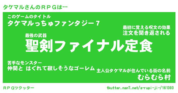 | 男性向けラノベタイトル風あだ名 | 『タケマルの憂鬱』 |