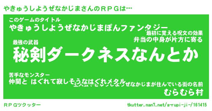 | 料理風あだ名 | 『節約★やきゅうしようぜなかじまと油揚げの玉子丼』 |