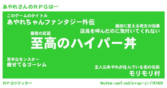 | 料理風あだ名 | 『節約★あやれと油揚げの玉子丼』 |
