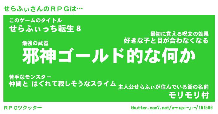 | 伝説のあだ名 | 『封印されしスナイパーせらふぃ』 |