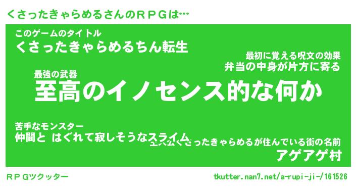 | 男性向けラノベタイトル風あだ名 | 『クサッタキャラメルアートオンライン』 |