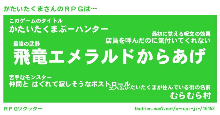 | 男性向けラノベタイトル風あだ名 | 『カタイタクマアートオンライン』 |