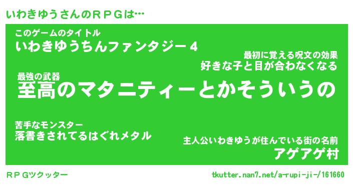 | ファンタジー風あだ名 | 『イワフェル』『エターナルイワキユウー』 |