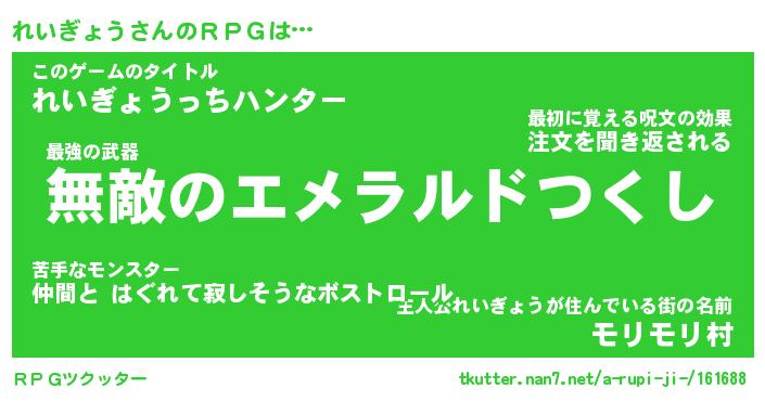 | ファンタジー風あだ名 | 『レイフェル』『エターナルレイギョウー』 |