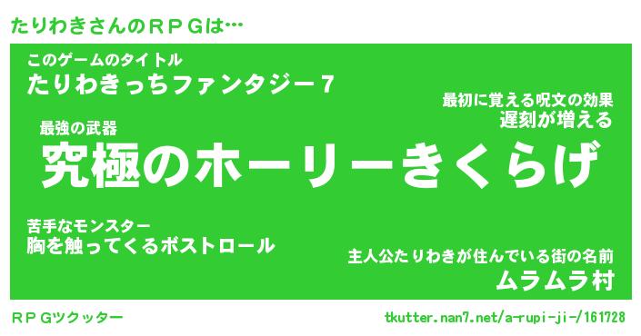 | ヒーロー風カッコイイあだ名 | 『スーパータリワキ』『幻影騎士タリ』 |