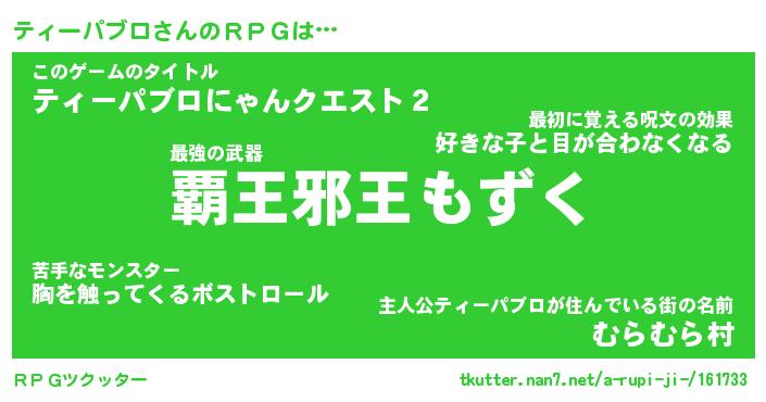 | 男性向けラノベタイトル風あだ名 | 『ティーパブロアートオンライン』 |