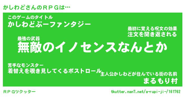 | ファンタジー風あだ名 | 『カシフェル』『エターナルカシワドー』 |