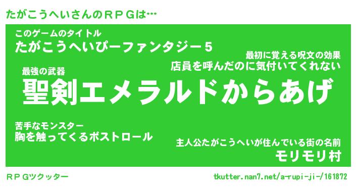 | 胡散臭い通販商品みたいなあだ名 | 『必ず成功する霊験あらたかなお札…その名も「たがこうへい」』 |