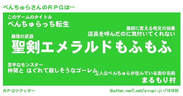 | 男性向けラノベタイトル風あだ名 | 『べんちゅらの憂鬱』 |