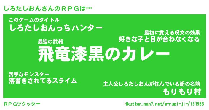 | ヒーロー風カッコイイあだ名 | 『スーパーシロタシオン』『魔戒騎士シロ』 |