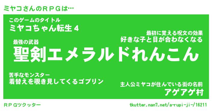| 胡散臭い通販商品みたいなあだ名 | 『必ず成功する霊験あらたかなお札…その名も「ミヤコ」』 |