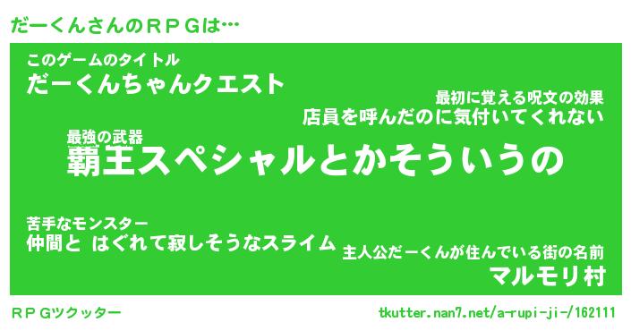 | ツイッター | だーくんさんのツイッターID『namakemono_man』 |