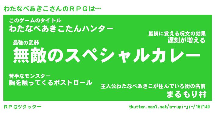 | 男性向けラノベタイトル風あだ名 | 『ワタナベアキコアートオンライン』 |