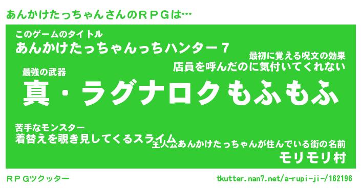 | 男性向けラノベタイトル風あだ名 | 『アンカケタッチャンアートオンライン』 |