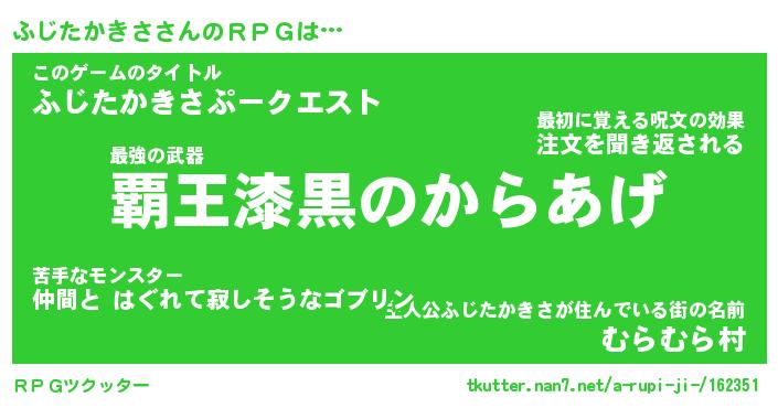 | 男性向けラノベタイトル風あだ名 | 『フジタカキサアートオンライン』 |