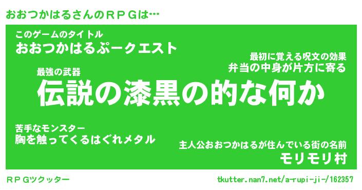 | 男性向けラノベタイトル風あだ名 | 『おおつかはるの憂鬱』 |