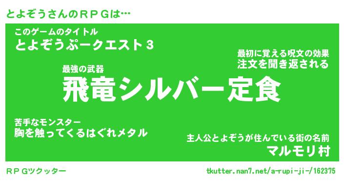 | 男性向けラノベタイトル風あだ名 | 『トヨゾウアートオンライン』 |