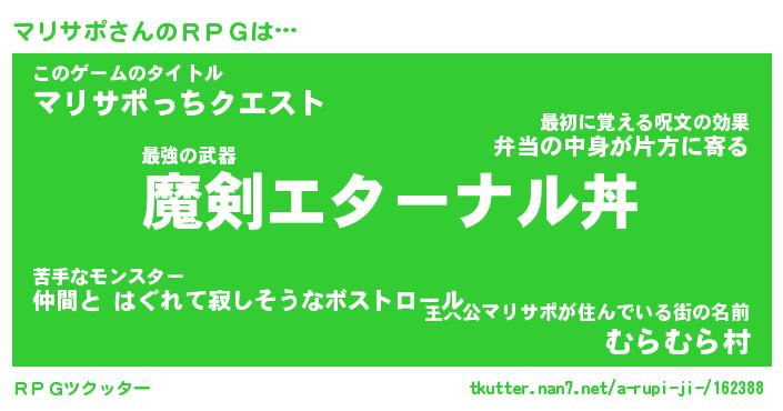| 男性向けラノベタイトル風あだ名 | 『マリサポの憂鬱』 |