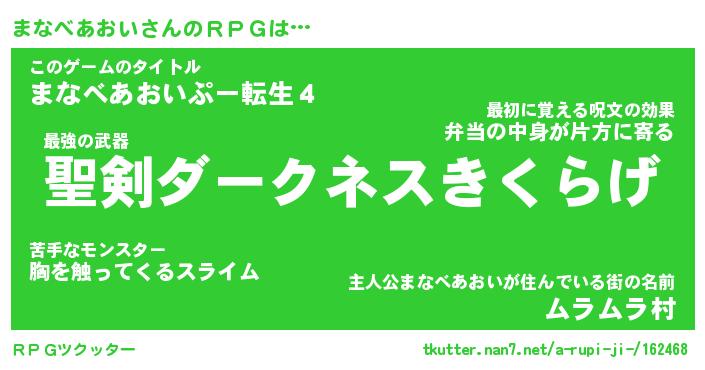 | 胡散臭い通販商品みたいなあだ名 | 『必ず成功する水晶球…その名も「まなべあおい」』 |
