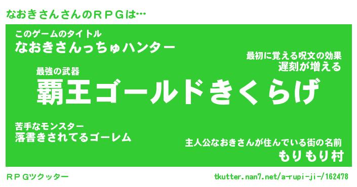 | 男性向けラノベタイトル風あだ名 | 『ナオキサンアートオンライン』 |
