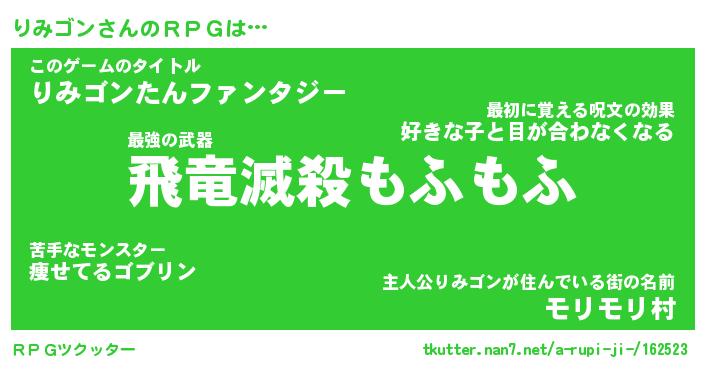| 胡散臭い通販商品みたいなあだ名 | 『億万長者になれる霊験あらたかなお札…その名も「りみゴン」』 |