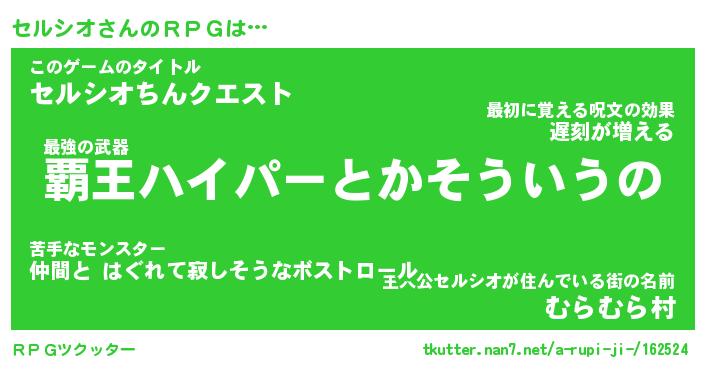 | 男性向けラノベタイトル風あだ名 | 『セルシオアートオンライン』 |