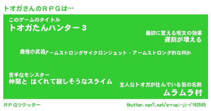 | 男性向けラノベタイトル風あだ名 | 『トオガの憂鬱』 |