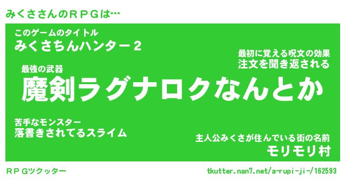 | 伝説のあだ名 | 『伝説の竜騎士みくさ』 |