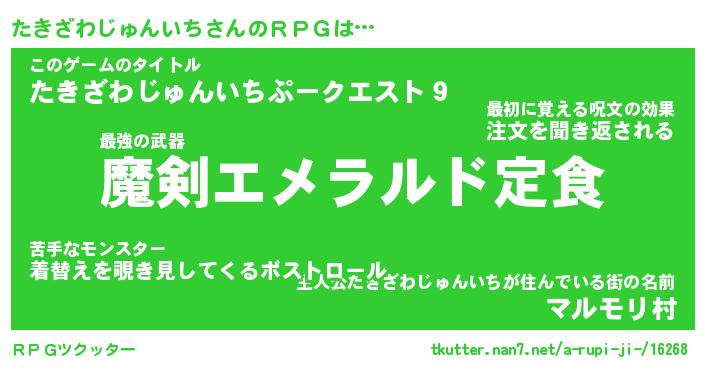 | 肩書あだ名 | 『たきざわじゅんいち御曹司』 |