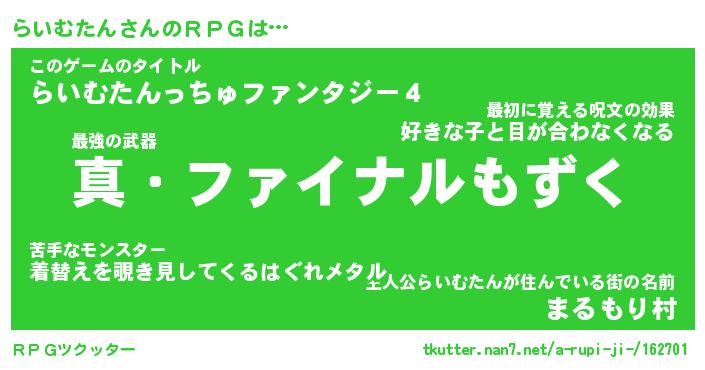 | ファンタジー風あだ名 | 『ライフェル』『エターナルライムタンー』 |
