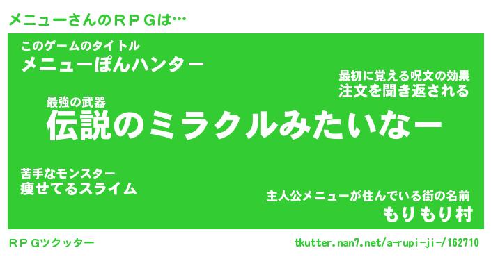 | ファンタジー風あだ名 | 『メニフェル』『エターナルメニューー』 |