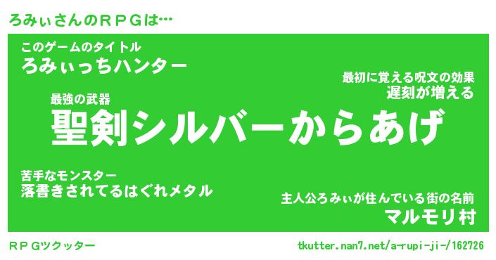 | 伝説のあだ名 | 『伝説の傭兵ろみぃ』『最強の忍者ろみぃ』 |