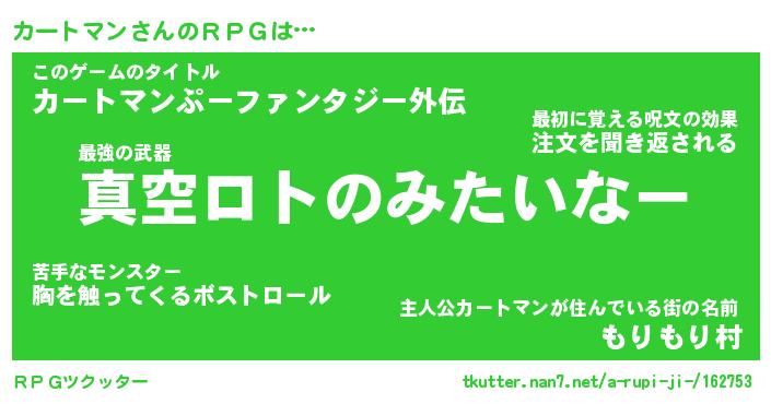 | ファンタジー風あだ名 | 『カーフェル』『エターナルカートマンー』 |