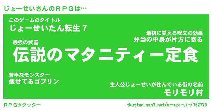 | 男性向けラノベタイトル風あだ名 | 『じょーせいの憂鬱』 |