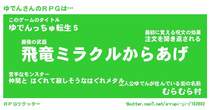 | 男性向けラノベタイトル風あだ名 | 『ユデンアートオンライン』 |