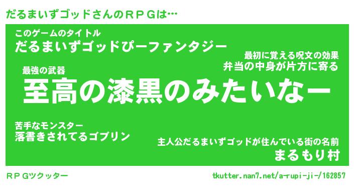 | 胡散臭い通販商品みたいなあだ名 | 『モテモテ間違いなし霊験あらたかなお札…その名も「だるまいずゴッド」』 |