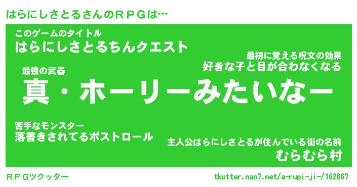 | 胡散臭い通販商品みたいなあだ名 | 『億万長者になれる水晶球…その名も「はらにしさとる」』 |