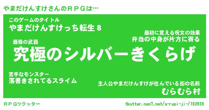 | 男性向けラノベタイトル風あだ名 | 『ヤマダケンスケアートオンライン』 |
