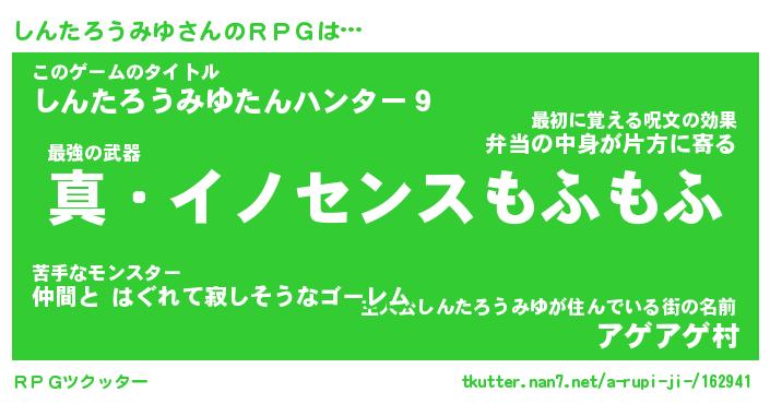 | 男性向けラノベタイトル風あだ名 | 『シンタロウミユアートオンライン』 |