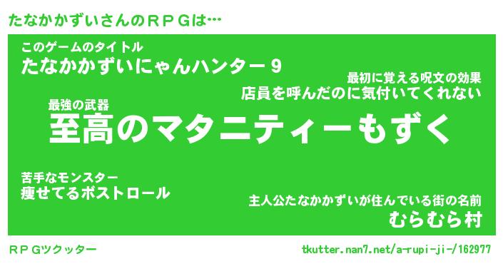 | ヒーロー風カッコイイあだ名 | 『スーパータナカカズイ』『魔戒騎士タナ』 |