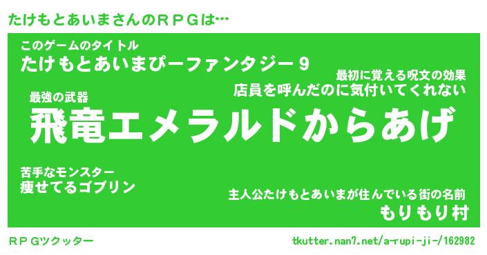 | 2回繰り返すあだ名 | 『たけたけ』『たたけけ』『ぬれぬれ』 |