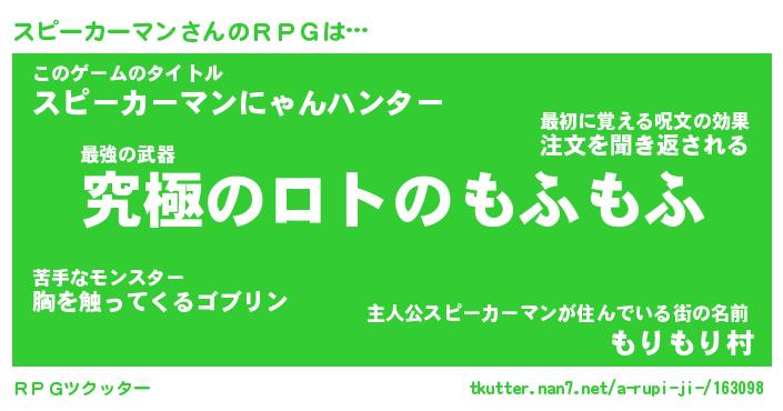 | 男性向けラノベタイトル風あだ名 | 『スピーカーマンの憂鬱』 |