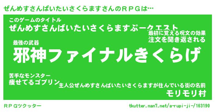 | ツイッター | ぜんめすさんばいたいさくらますさんのツイッターID『fukuyoka_star』 |