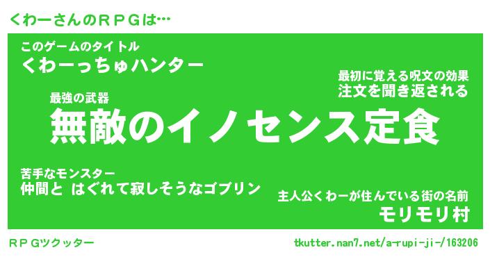 | 伝説のあだ名 | 『封印されしスナイパーくわー』 |