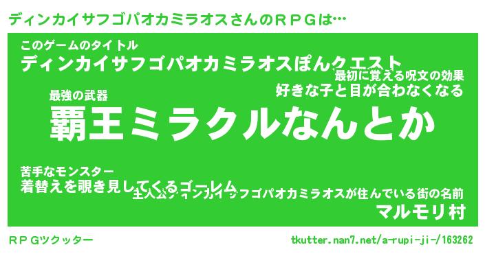 | ヒーロー風カッコイイあだ名 | 『スーパーディンカイサフゴパオカミラオス』 |