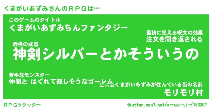 | 胡散臭い通販商品みたいなあだ名 | 『モテモテ間違いなし水晶球…その名も「くまがいあずみ」』 |