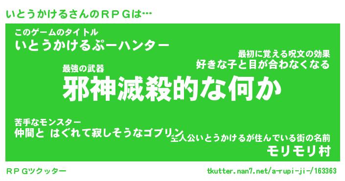| ヒーロー風カッコイイあだ名 | 『スーパーイトウカケル』『天弓騎士イト』 |